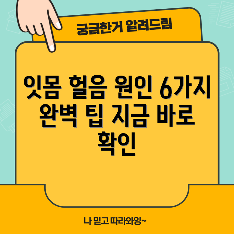 6가지 주요 원인 분석 잇몸 헐음의 6가지 원인을 파헤치기 위해, 각각의 주요 원인을 자세히 살펴보겠습니다. 이것은 잇몸 건강을 지키고 예방할 수 있는 중요한 정보입니다. 주요 원인 잇몸 헐음은 여러 요인에 의해 발생할 수 있으며, 다음은 그 주된 원인들입니다: 원인 설명 치주염 치아와 잇몸 주변에 발생하는 박테리아 감염으로 잇몸이 붓고 헐어나는 원인입니다. 불량한 구강 위생 정기적인 … Read more